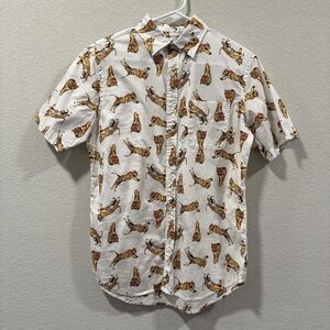 Tiger print short sleeve button-up. Washed but never worn. No flaws. Size men’s small.