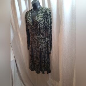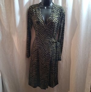 Tiger stripe wrap dress SP pit to pit size is 18" top of shoulder to bottom hem is 43" if you have any questions please message me bundle more items for bigger deals Bin-109