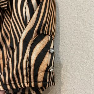Tiger striped button down, diamond buttons, small, good condition, silk, low cut. Ready to wear!