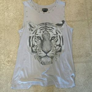 Light Grey tank top with studs around the shoulder and neck. Never wore this but don't have tags. It's in great condition