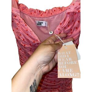 Tiger Mist Womens Medium Ruched Front Dress Pink Red Hearts Short Sleeve NWT