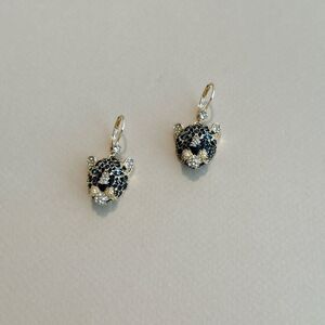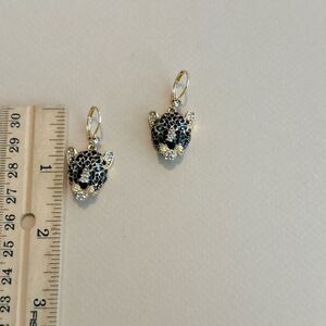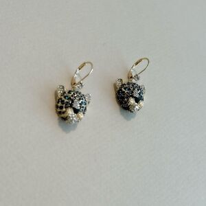 Diamond decor tiger charm dangle hoop earrings in gold tone hardware