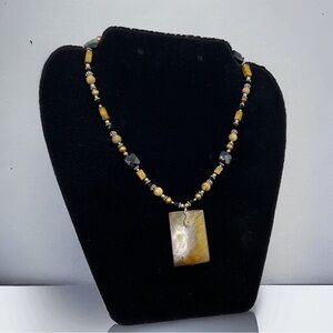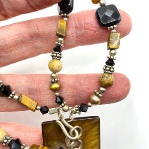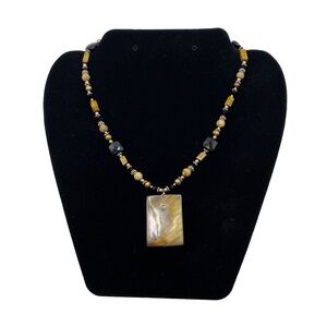 Tigereye Natural & Glass Beads Pendent. Has large Tigereye pendant in beaded necklace. Very good condition. #22