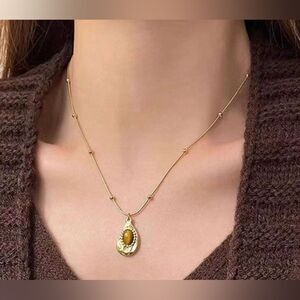Boho vintage style Tiger eye pendant necklace in gold tone hardware