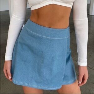 Tigermist- Cody Blue Faux Wrap-Style Pleated Style Mini Skirt Size Medium