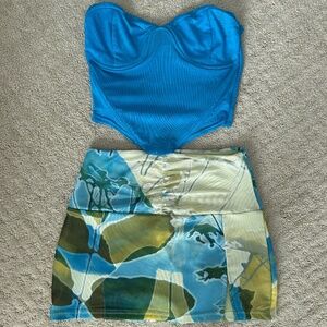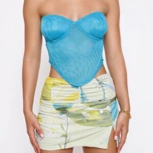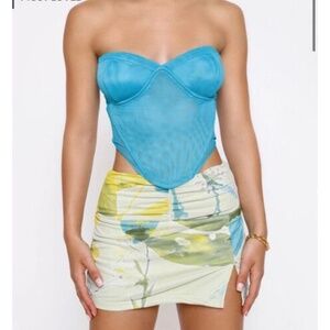 Mesh corset top and mini skirt, tropic color. Worn once. Perfect condition