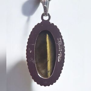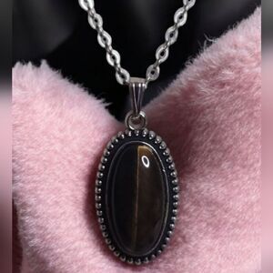 This elegant Tigers Eye silver pendant necklace adds a touch of sophistication to any outfit. Perfect for any occasion.