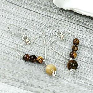 Tigers Eye Gemstone Heart Dangle Earrings, Crystal Jewelry, 2"