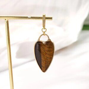 Tigers Eye Gemstone Heart Pendant 18K Yellow Gold Plated Layering Necklace