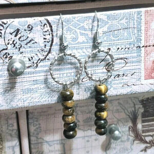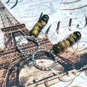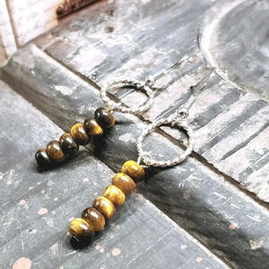 Tigers Eye Gemstone Rondelle Beads Textured Silver Ring Handcrafted Earrings