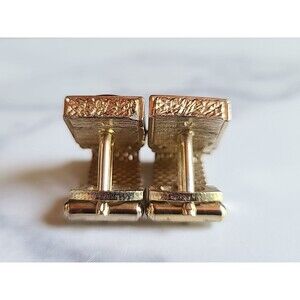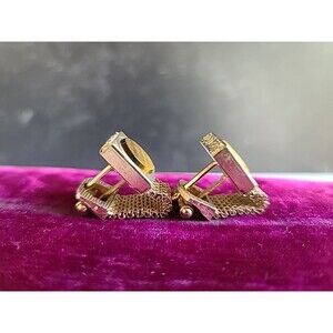 Tiger's Eye Gold Tone Mesh Metal Cufflinks Vintage 1970's