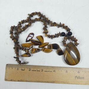 Tigers Eye Lot w/ Large 4" 573g Display Specimen + Gemstone Chips Necklace