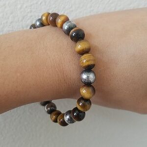 Tiger's Eye Chunky Stone Necklace, Tiger's Eye and Sterling Silver beaded magnetic bracelet, and Tiger's Eye with .925 Sterling Silver earrings.
