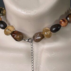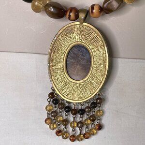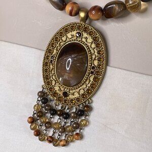 Tigers Eye Oval Pendant Necklace Choker Agate Stone Jewelry Vintage u