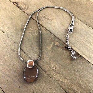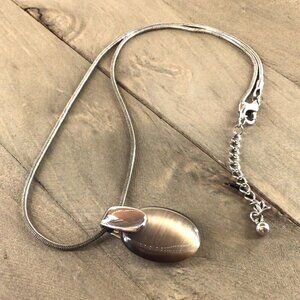 Tigers Eye Pendant Necklace Silver Tone Snakechain