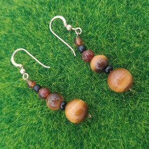 Tigers Eye Precious Stone Tiered Drop Earrings E1022