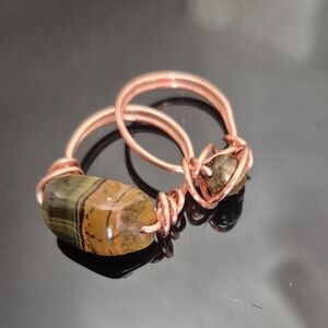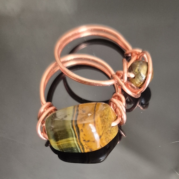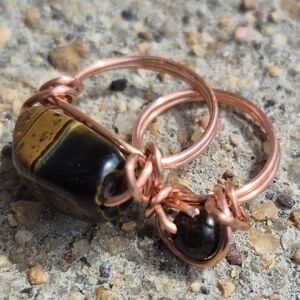 Handmade Natural set of Tigers Eye rings wrapped with 100% Copper!
