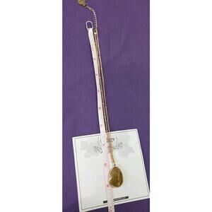 This pendant necklace features a teardrop-shaped tiger's eye stone set in a gold-tone bezel on a satellite station chain. The necklace has a lobster closure and an adjustable length from 16-18 inches. It is signed by the brand 7 Charming Sisters and is designed as a stylish and stackable piece. The tiger's eye stone adds a touch of beauty to the accessory, making it a charming addition to any jewelry collection. This item is new on the original card.