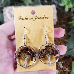 Tiger's Eye Tree of Life Earrings #13