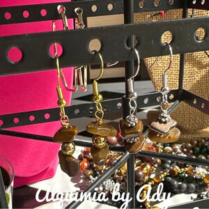 Tiger’s Eye dangle dainty long earrings / silver/gold/minimalist
