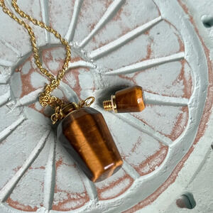 Tiger’s eye perfume bottle pendant in vermeil gold/ chunky maximalist