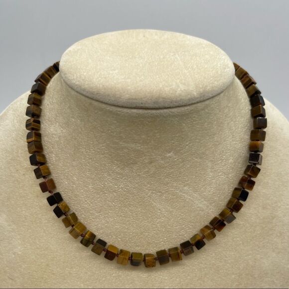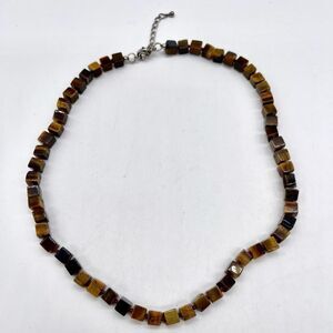 Tigers Eye Cube Shaped Necklace, 18 inches Length with Silver tone closure, 1.5 inches extender