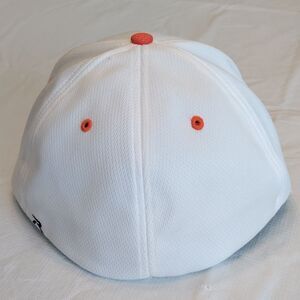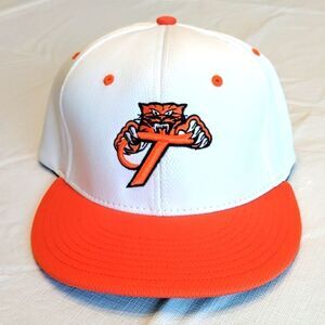 White and orange local hat with embroidered Tiger graphic on front. In very good condition, no major flaws. Some minor flaws may exist. See photos for details. Fits like 7 1/2