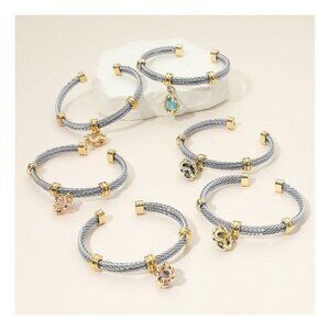 Tigerstars Blue Cubic Zirconia Stone Clover Charm Cuff Bracelet
