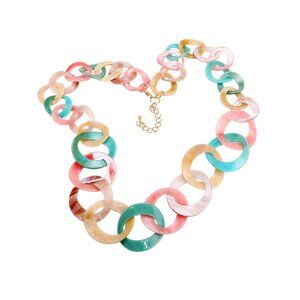 Tigerstars Multi Color Celluloid Acetate Chunky Link Long Necklace
