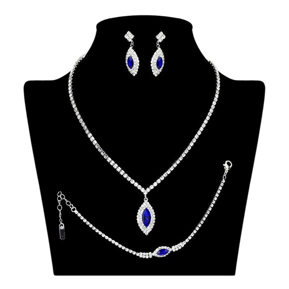 Tigerstars Sapphire Marquise Stone Pendant Accented Rhinestone Pave Necklace Set
