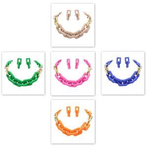 Tigerstars Stylish Fuchsia Rectangle Chunky Link Statement Necklace Set