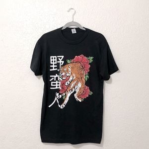 Black tiger tee shirt with pink flowers on it. Size:Medium