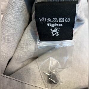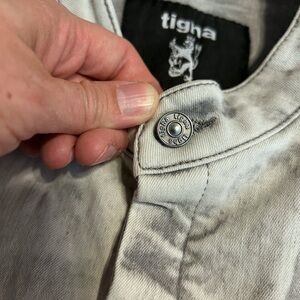 Tigha Denim Grandad Stand Up Collar Shirt, size Large
