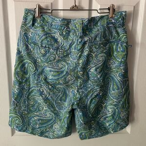 Tighman Active Fit Short in Blue with Green Paisley by Liquid Flow. W32 inseam 8” EUC from a smoke free/ pet friendly home