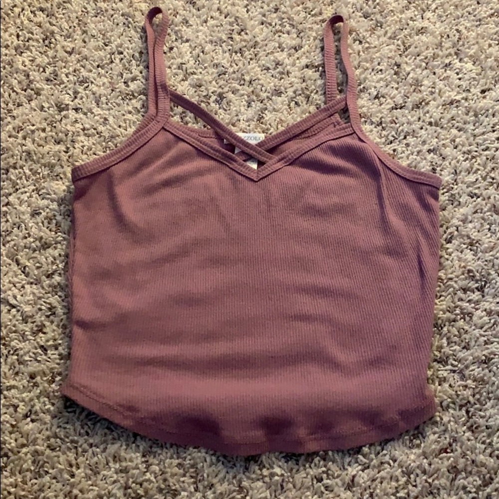Super stretchy, fits XS and S. Crop top with criss cross front. Easy to wear on its own or under sweaters or with jean jacket/cardigan.