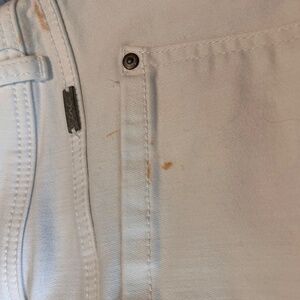 White shorts very sexy and sporty. It has a small yellow stain in the back pocket seen in the picture