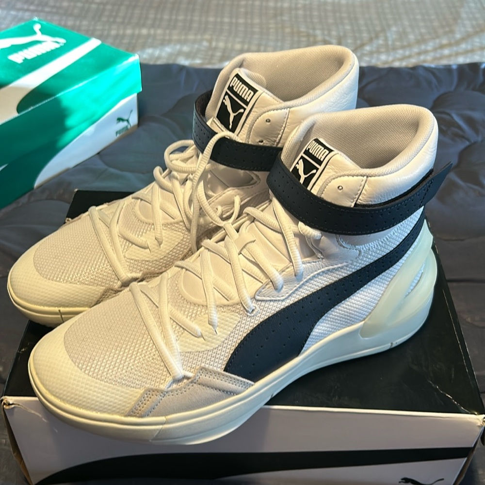 Puma high with strap white blue gray brand new mint condition