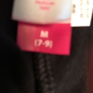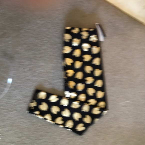 Women’s medium black leggings with a gold colored heart design. Washing instructions on attached label. These are new. Great styling for the young at heart!