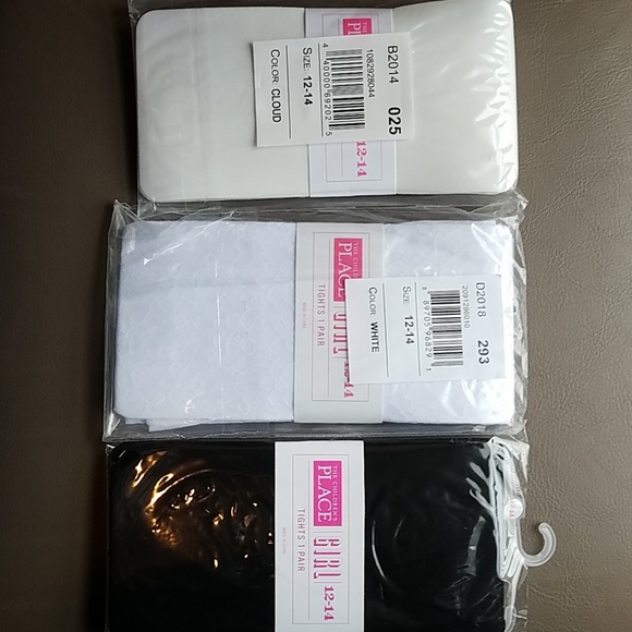 Girls Childrens Place Tights. 3 pair. White, Cloud & Black colors. Brand New. Size 12-14.