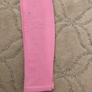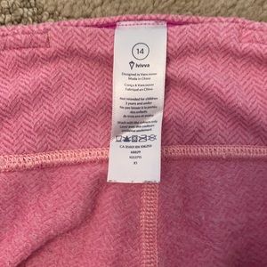Ivivva( LuluLemon) tights. Worn a couple of times. Mark’s from gymnastic practice on knees which might come out easily but I haven’t tried.