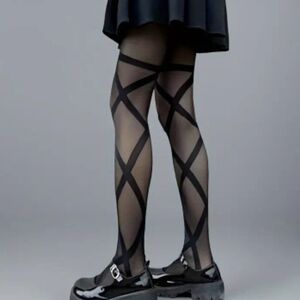 Elegant Special Series Women's Sheer Lace Cross Bandage Tights, 1 Pcs, Polyamide & Spandex Blend, Hand Washable, Transparent Thin Breathable Tights Print Detail