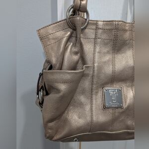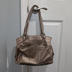 Tignanelle Metallic Gold Pebble Leather Double Handle with Zipper Shoulder Bag