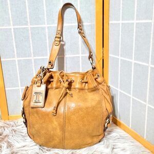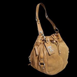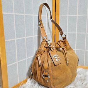 Tignanello Leather & Suede Camel Color Drawstring Bucket Bag NWT