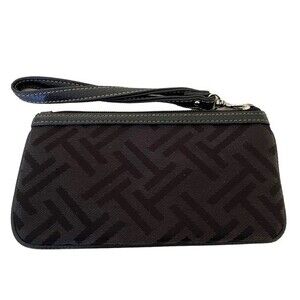 Tignanello Black Canvas Wristlet with Silver Signature Logo Small Travel Wallet