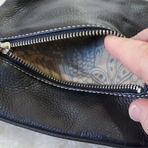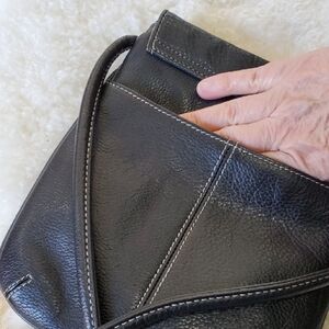 This stylish black crossbody bag by Tignanello features a flap closure and a long strap for versatile wear. Made from leather material, it has a sleek rectangular shape that is perfect for everyday use.