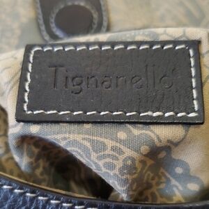 Tignanello Black Crossbody Bag with Flap Closure and Long Strap