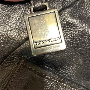 Tignanello Black Leather Handbag with Silver Accents