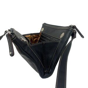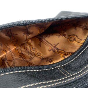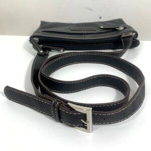 Tignanello Black Leather Travel Crossbody Bag Adj Strap - 3 Compartments EUC