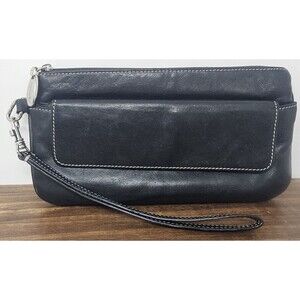 Tignanello Black Leather Zip Wallet Wristlet Bag Clutch Credit Card Soft 8.5"x4"