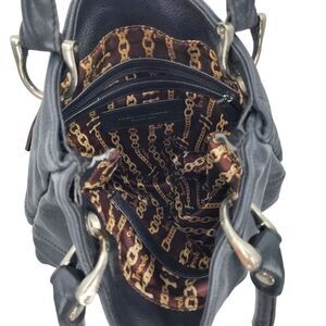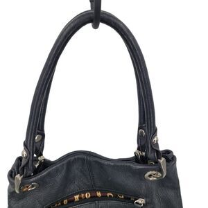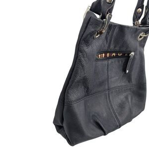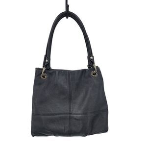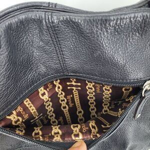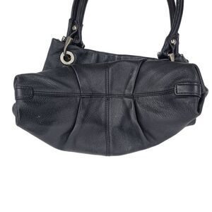 Tignanello Black Pebble Leather Double Shoulder Bag Handbag Purse Rectangle